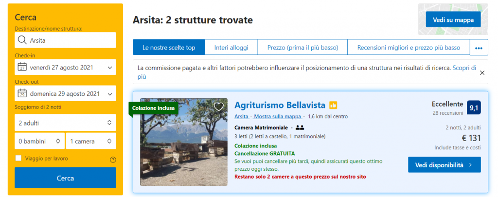 Ecco un esempio (clicca sull’immagine per andare su Booking):