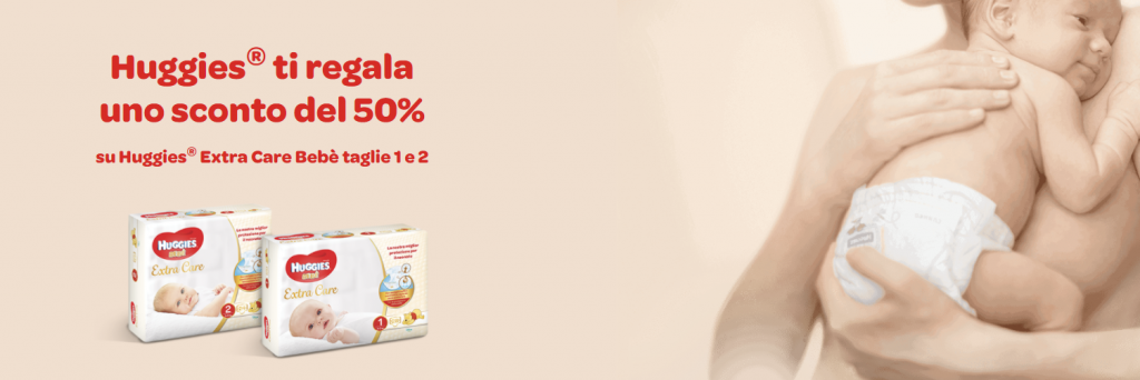 Huggies offre un codice sconto sui pannolini della linea Extra Care Bebè, che ti permette di risparmiare il 50% della spesa!