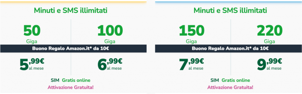 Attivando una qualsiasi offerta presente sul portale dell’operatore virtuale di WindTre otterrai 10€ in regalo da utilizzare sul tuo prossimo ordine nel portale di Amazon.