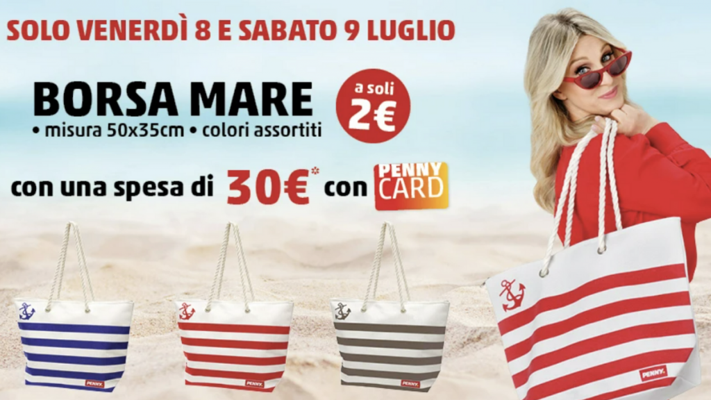 Ti serve una borsa mare? Venerdì 8 e sabato 9 luglio 2022 da Penny Market la puoi avere per soli 2€.