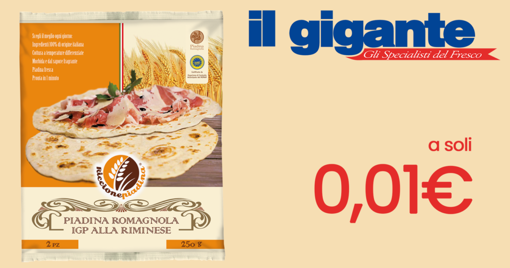 Nei punti vendita “Il Gigante” puoi acquistare la Piadina Romagnola IGP a solo 1 centesimo! Scopri come fare.