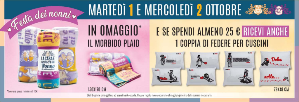 Inoltre, se raggiungi una spesa di 25€, riceverai un ulteriore OMAGGIO, che però varia da regione a regione. Nel nostro caso (Puglia), avremmo una coppia di federe per cuscini.