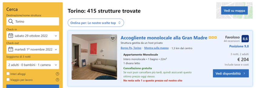 Su Booking, il monolocale “Alla Gran Madre” ha una valutazione ottima di 8,6/10 con 44 recensioni. Un posto perfetto per un viaggetto last minute all’insegna della storia e dei monumenti dell’elegante capoluogo piemontese!