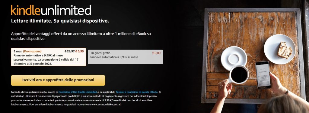 La promozione “3 mesi di Kindle Unlimited a 0,99€” è attiva soltanto fino al 14 novembre 2025. Non fartela sfuggire!