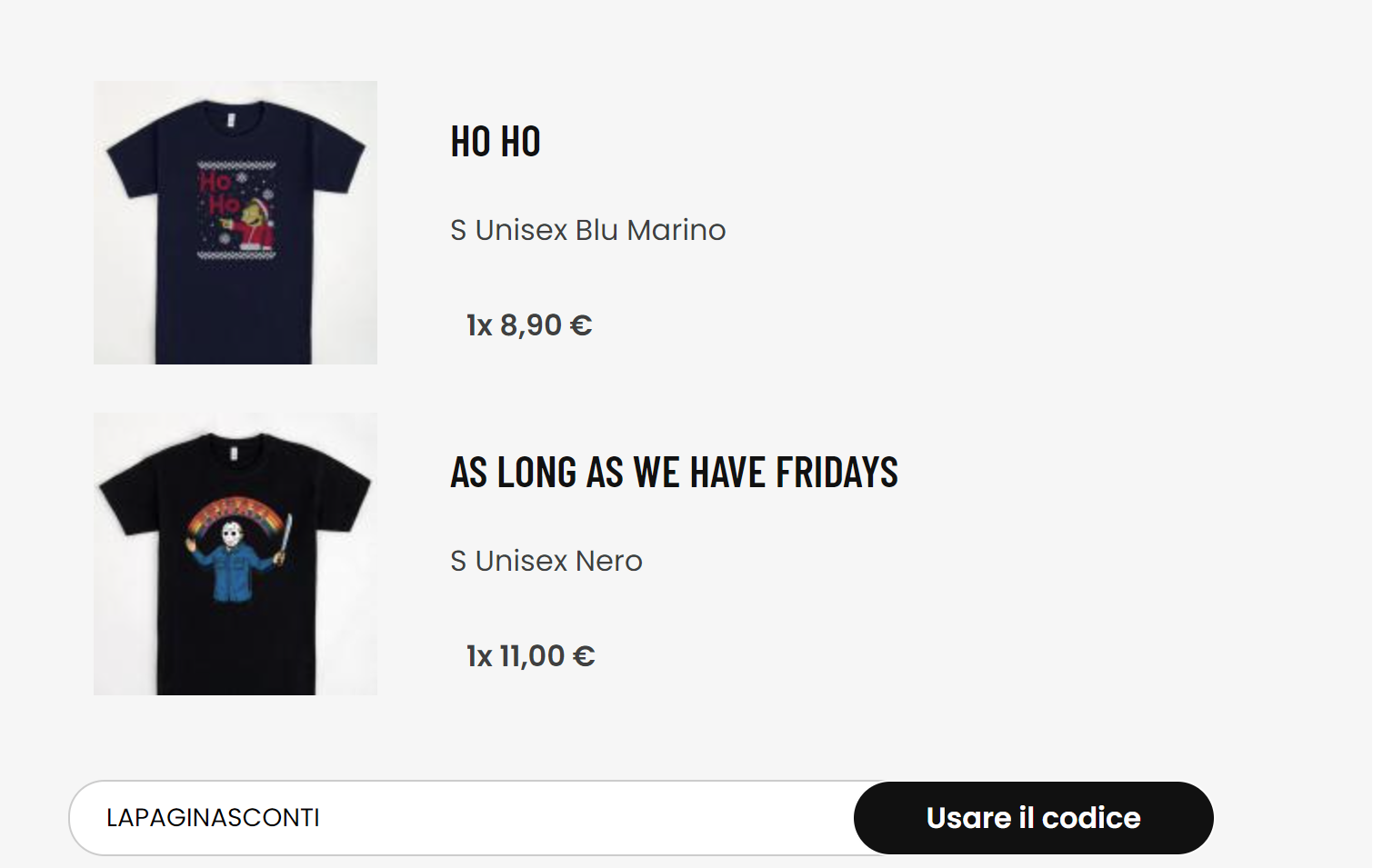Una volta terminato il tuo ordine, clicca sul carrello in alto a destra e inserisci il codice sconto LAPAGINASCONTI all’interno dell’apposito spazio (come illustrato in foto) e clicca su “Usare il codice”.