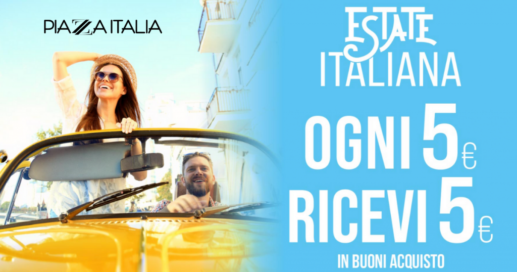 Promo Piazza Italia: ogni 5€ di acquisto, ricevi 5€ di buoni sconto!