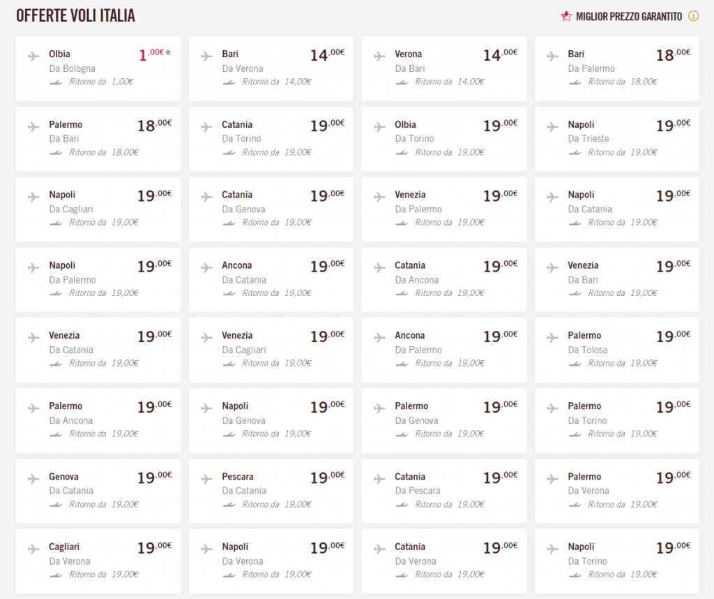 Al momento della stesura di questo articolo, sono però rimaste solo queste tratte italiane in offerta: