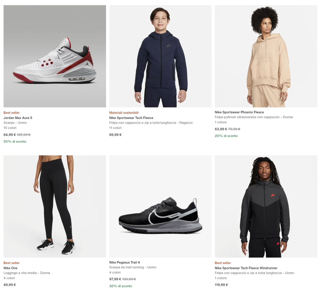 Non tutti gli articoli sono in promozione. Sono infatti esclusi i lanci SNKRS, le gift card e qualsiasi altro prodotto Nike che non rientri nella selezione in promozione.