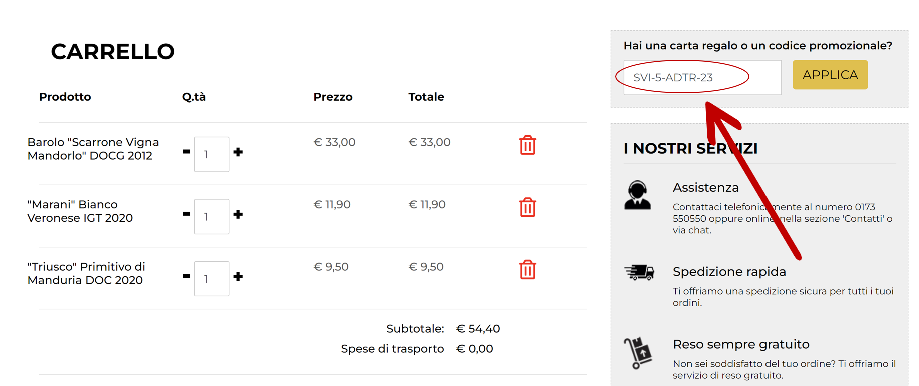 Inserisci il codice sconto SVI-5-ADTR-23 nell’apposita casella, come mostrato nella foto che segue.