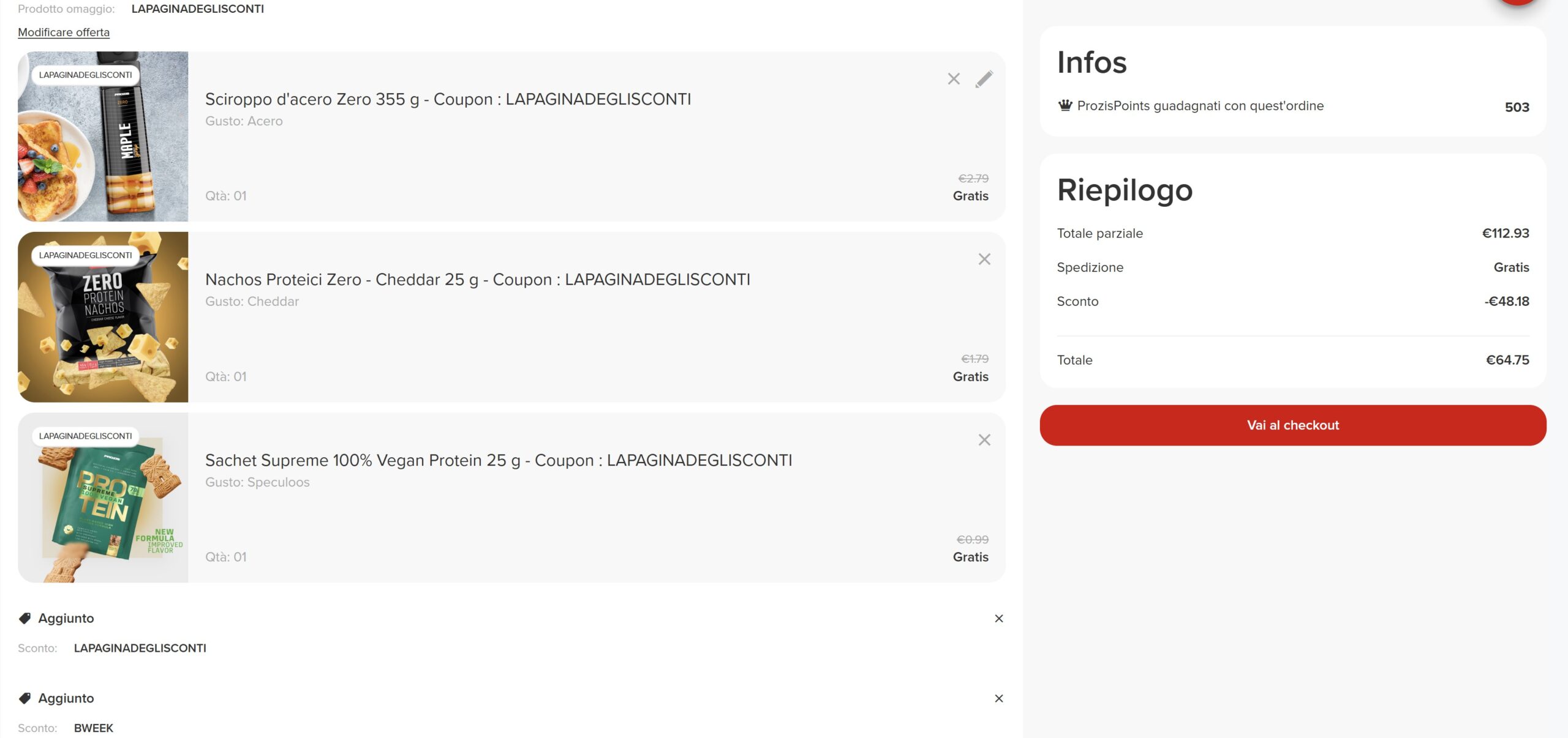 • LAPAGINADEGLISCONTI che ti aggiunge al carrello dei prodotti in omaggio a seconda dell’importo della spesa.