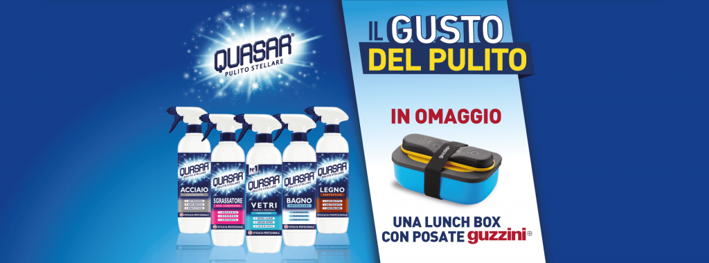 Con “Il gusto del pulito”, infatti, spendere almeno 10€ in prodotti Quasar ti garantisce l’occasione di richiedere la tua lunch box!