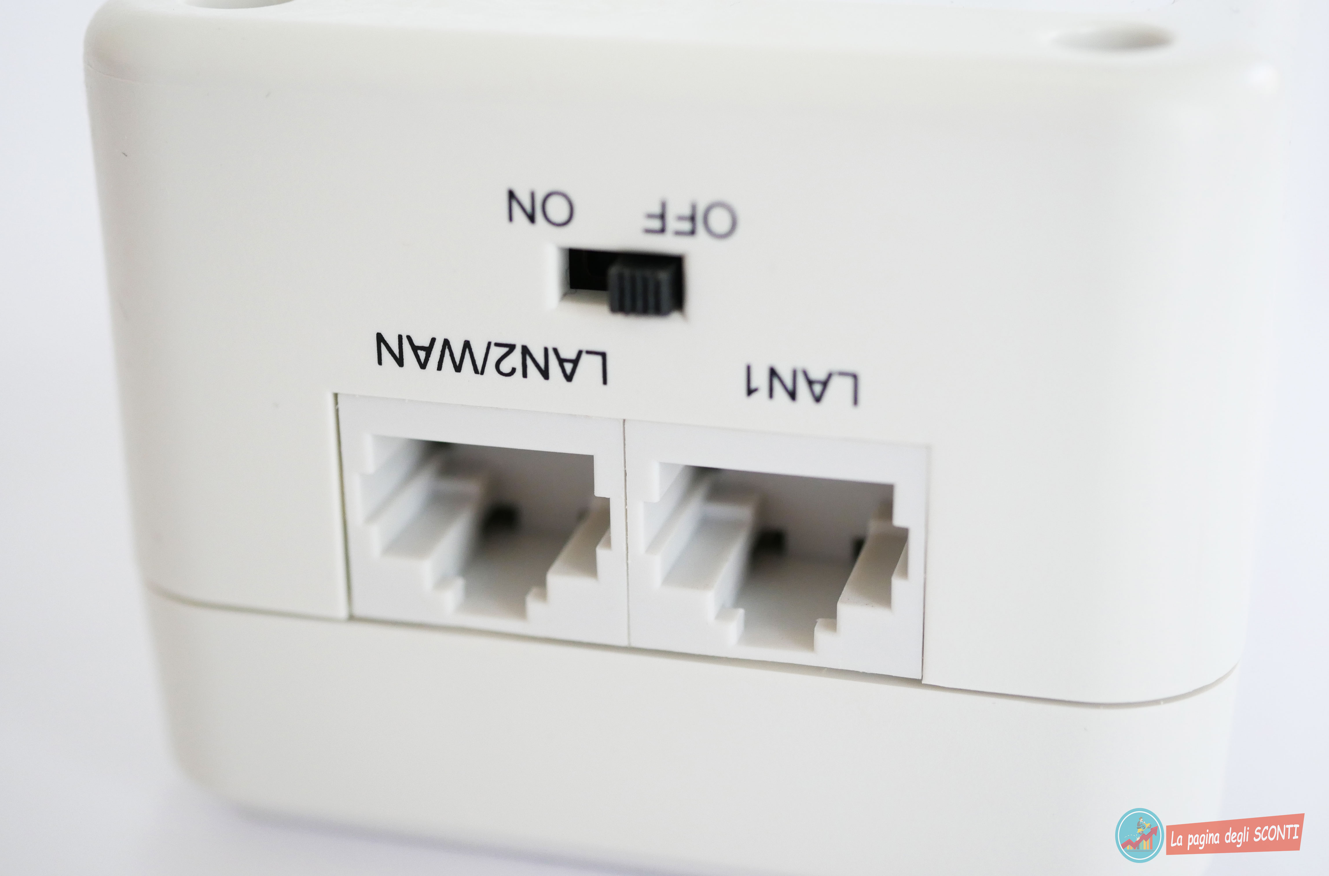 Oltre all’ingresso Ethernet troviamo un tasto “reset/security” sul dispositivo primario, mentre sul secondario abbiamo uno switch “on/off” che ci consentirà di spegnere il dispositivo quando vogliamo, cosa che non potremmo fare con il primario, quest’ultimo resterà sempre acceso se lasciato attaccato alla corrente.