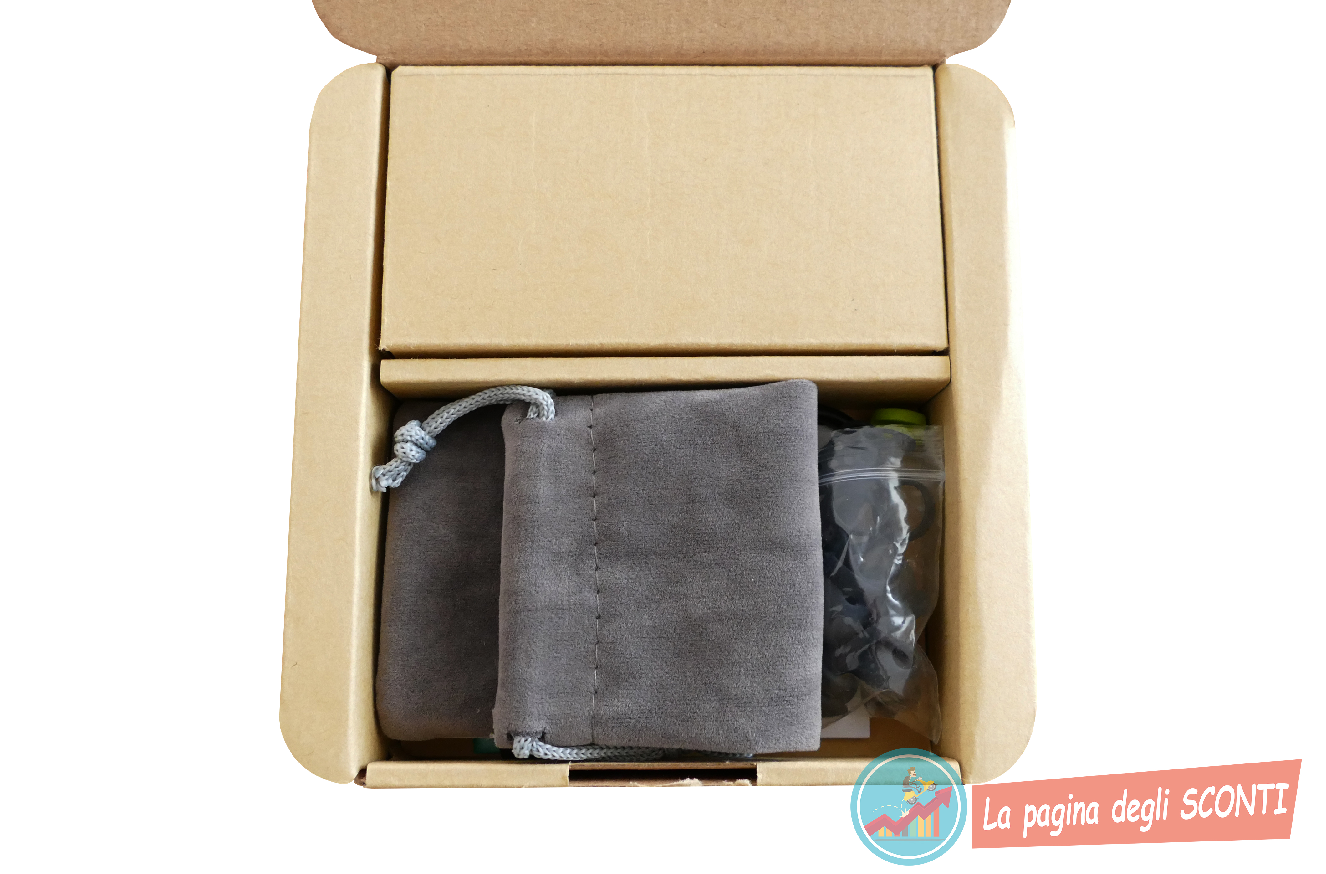 La confezione è molto compatta e al suo interno contiene diversi accessori. Oltre alle cuffie che troviamo in una scatolina separata, vi sono:
