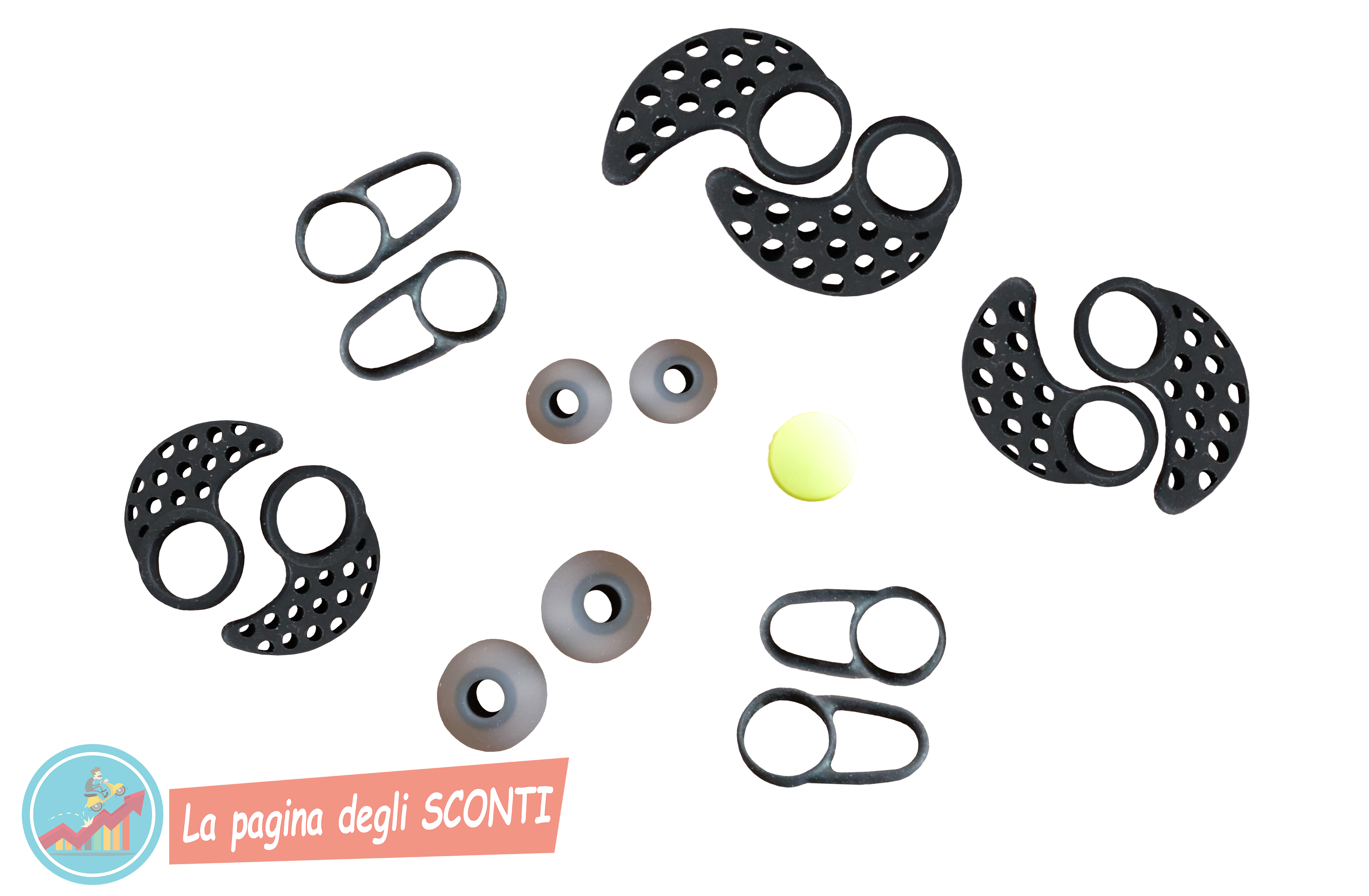 Aukey permette a tutti gli utenti che acquistano il prodotto di “settare” al meglio le cuffie, fornendo come anticipato prima, molti gommini di varie forme e misure.