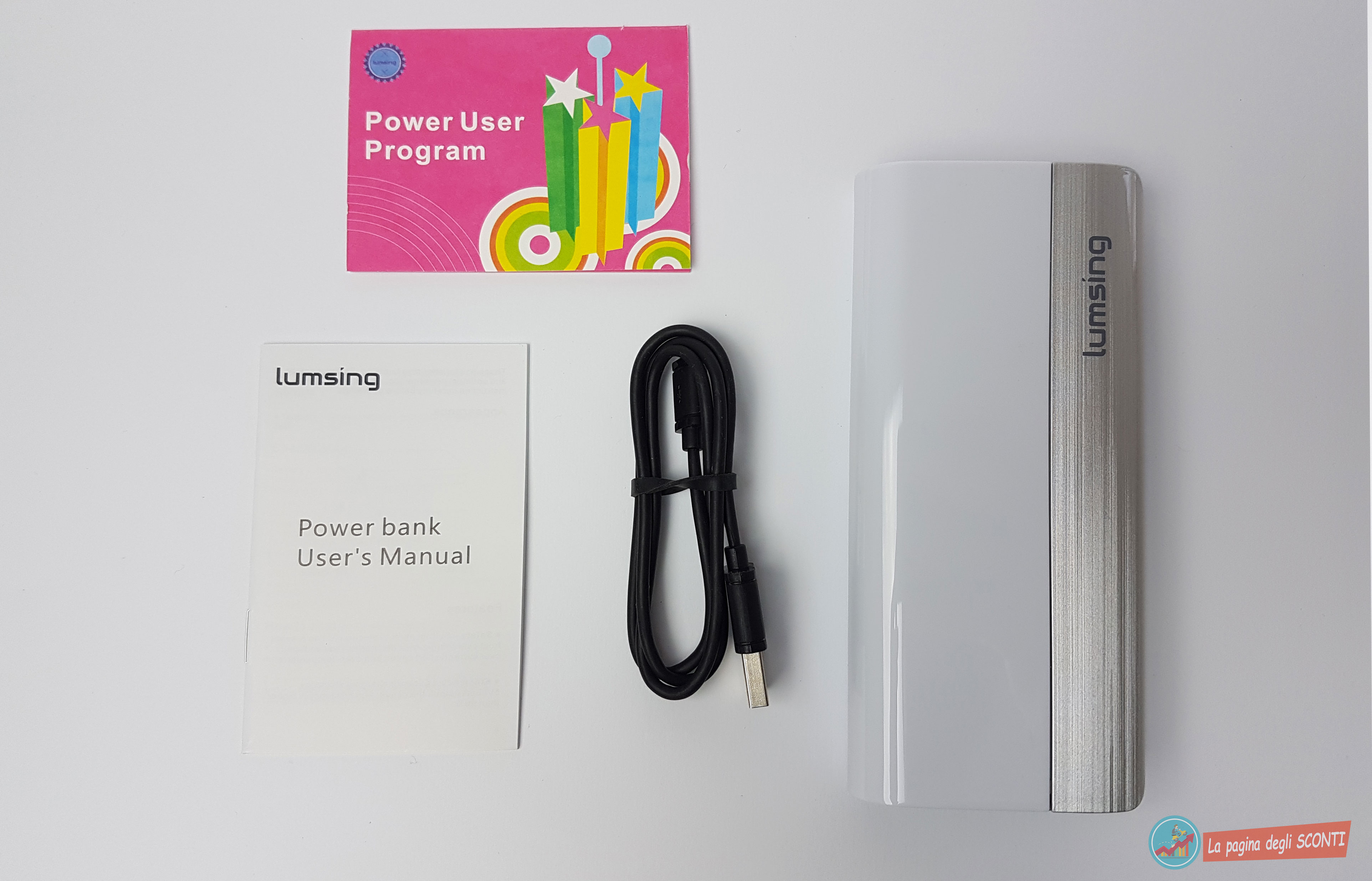 Al suo interno oltre la batteria portatile troviamo un cavetto USB/micro USB lungo circa 20 cm e i due classici manuali Lumsing, uno che ci illustra le varie specifiche del prodotto mentre l’altro ci invita a registrarlo sul sito dell’azienda.