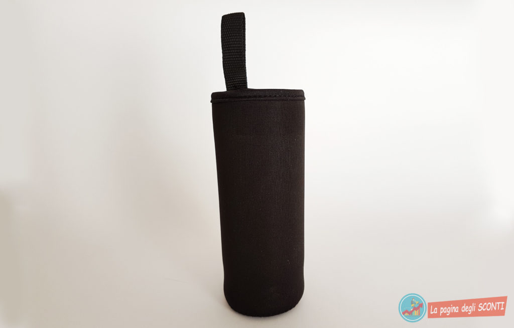 Abbiamo trovato molto pratica ed utile la custodia termica in neoprene, che permette di preservare la temperatura del liquido contenuto all’interno della bottiglia, e grazie alla comoda linguetta sarà possibile assicurare il tutto con un pratico moschettone.
