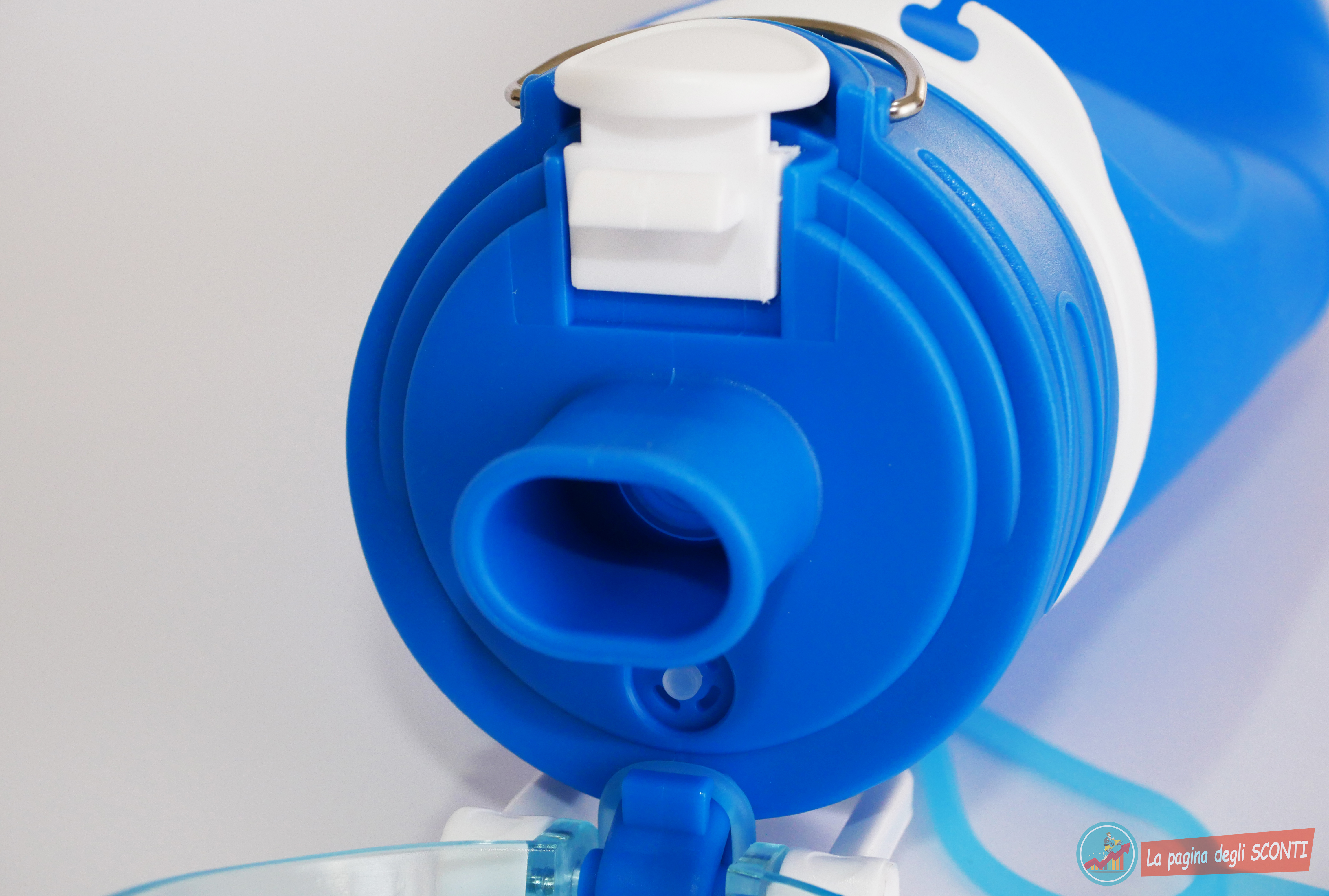 Siamo rimasti molto sorpresi dal beccuccio, è molto largo quindi la quantità di liquido che riusciremo a bere in pochi secondi sarà molta, in più all’interno troviamo una membrana che farà uscire il contenuto soltanto quando saremo noi a premere la borraccia.