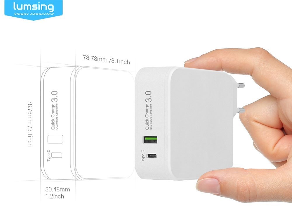 L’articolo in questione è il caricabatterie da muro Quick Charge 3.0 Type-C prodotto da Lumsing.