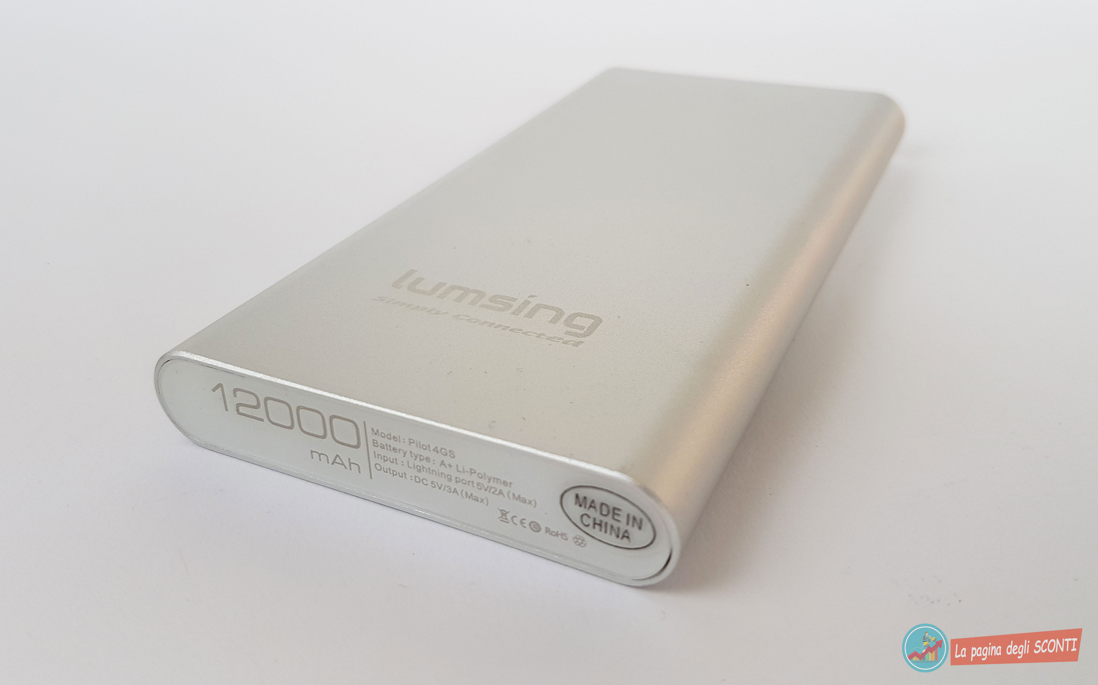 Il prodotto in questione è il caricabatterie portatile con input lightning da 12000 mAh prodotto da Lumsing.