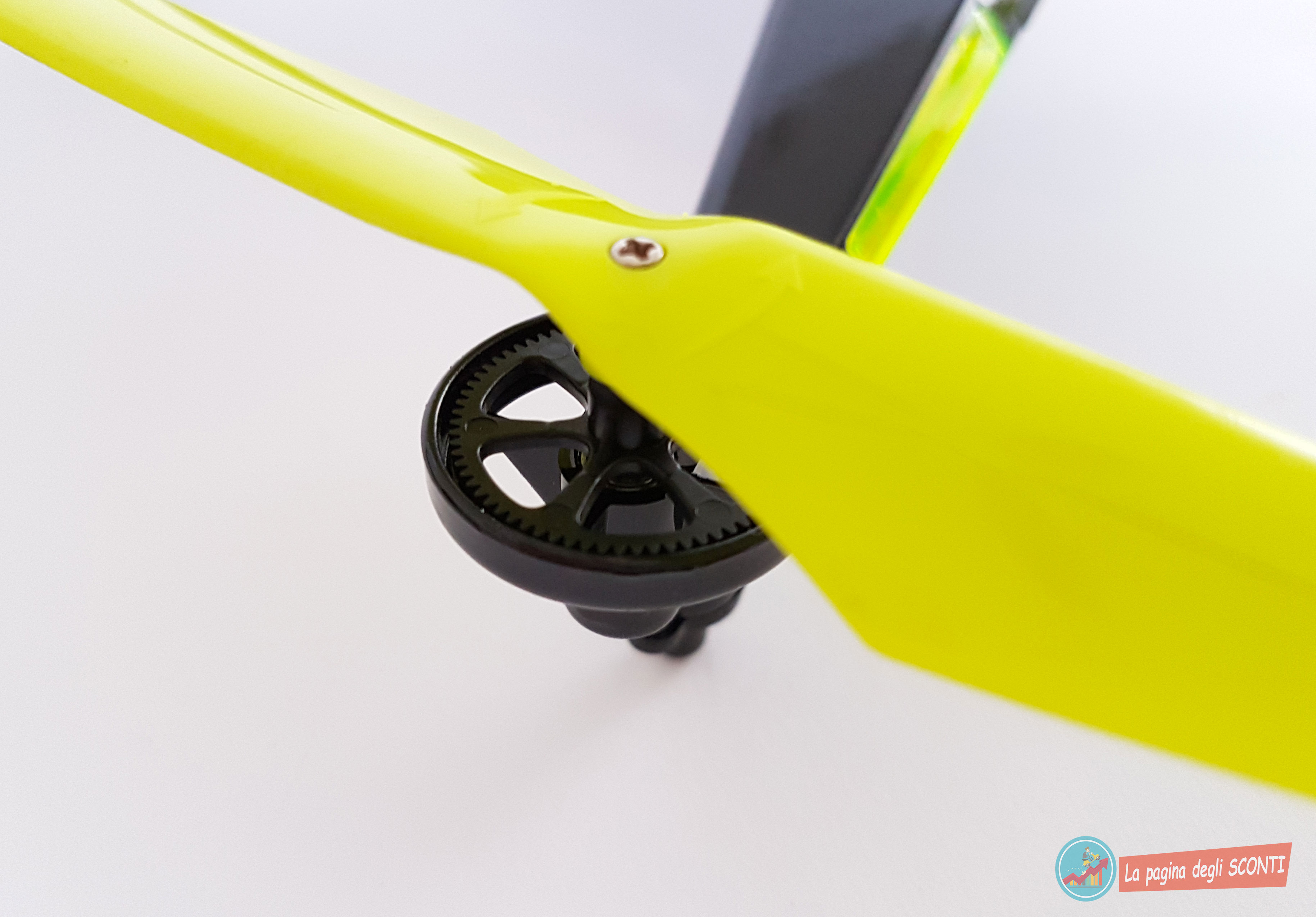 Siamo rimasti piacevolmente colpiti dalle eliche e dai motorini che questo quadricottero possiede, ogni elica misura 135 mm e risultano piuttosto robuste, insieme ai 4 motorini che riescono ad effettuare molti giri al minuto, il drone riesce a volare fino ad un’altezza di circa 100 m.