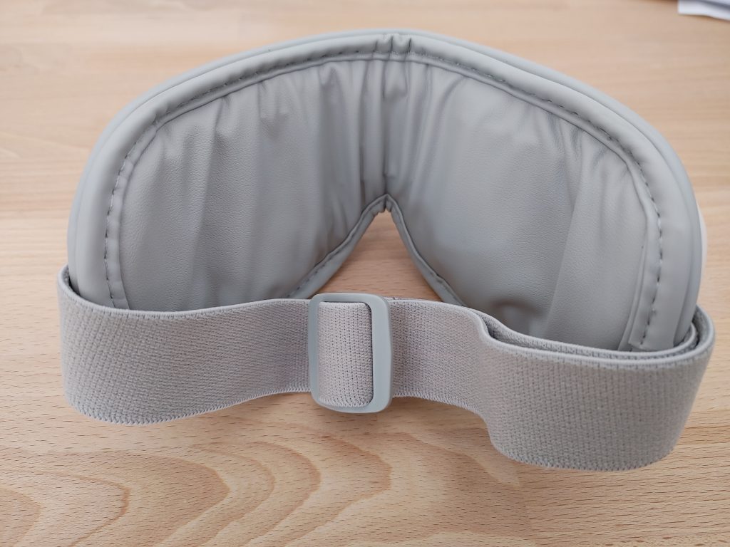 Ma veniamo al retro, la parte più importante del massaggiatore. Ciò che appoggia direttamente agli occhi e alle tempie, e che in parte copre anche la nostra fronte sono dei cuscinetti in pelle motorizzati, che alla pressione delle varie modalità si gonfiano e sgonfiano. Il risultato è un massaggio all’intera zona oculare.