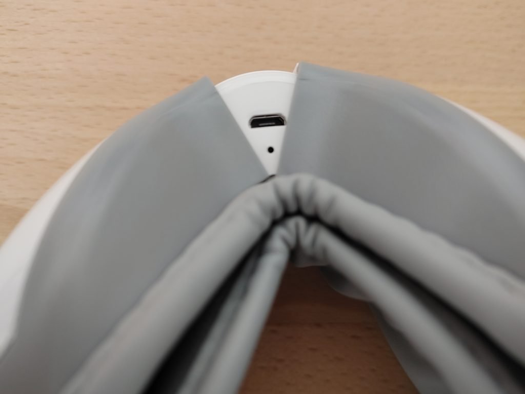 Il massaggiatore è a tutti gli effetti un oggetto che non abbiamo mai visto prima. Sembra un Oculus Rift, ma può essere piegato, quindi è facilmente trasportabile per il viaggio (può essere usato ad esempio in aereo).