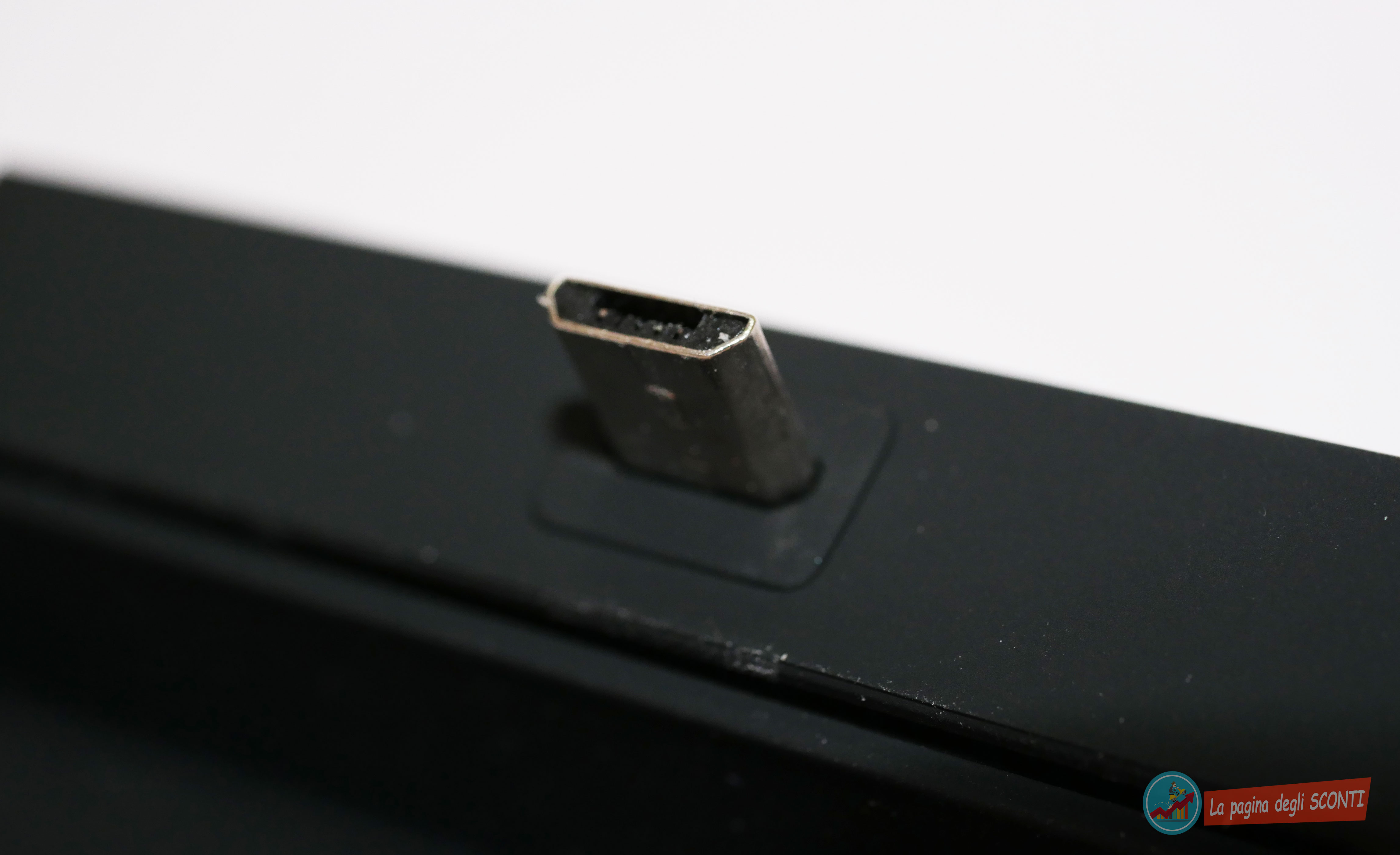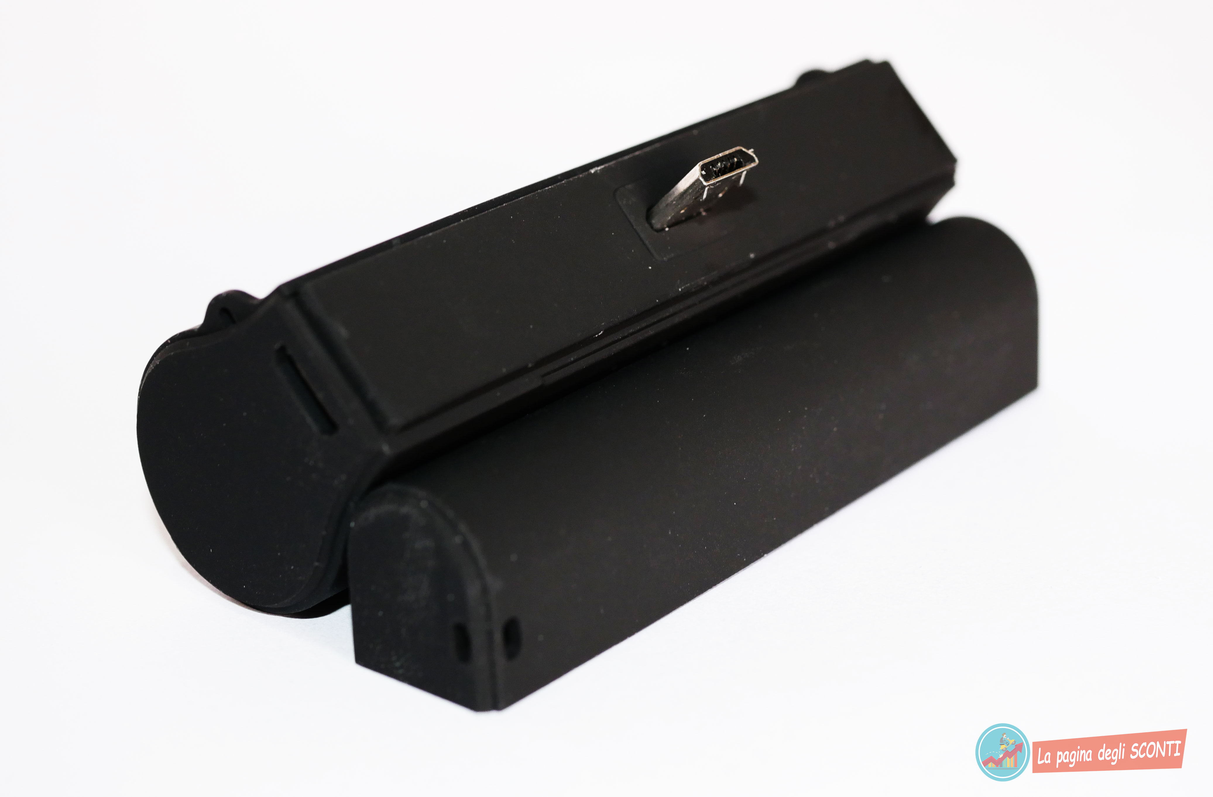 Per ricaricare la mini batteria occorrerà un cavo USB – Micro USB da collegare nella parte laterale.