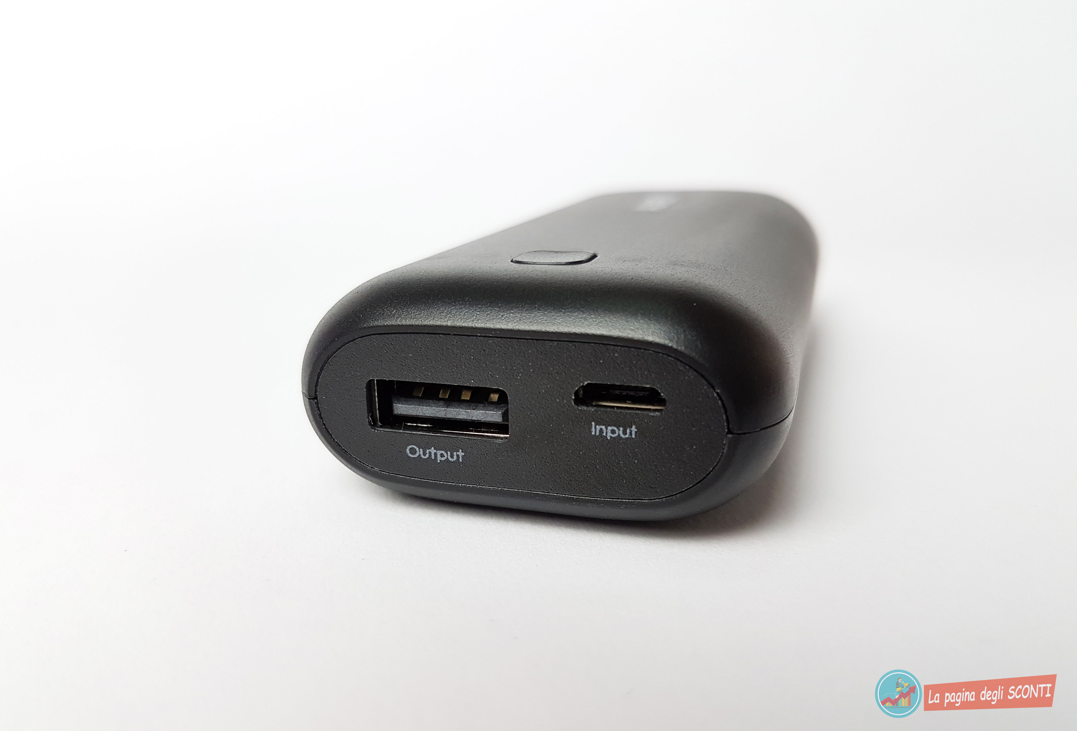 Nella parte frontale troviamo un’entrata USB per collegare i dispositivi da caricare e l’entrata micro USB per ricaricare il prodotto stesso. Purtroppo non vi è la torcia, un plus che può sembrare futile ma che in molte situazioni potrebbe risultare molto utile.