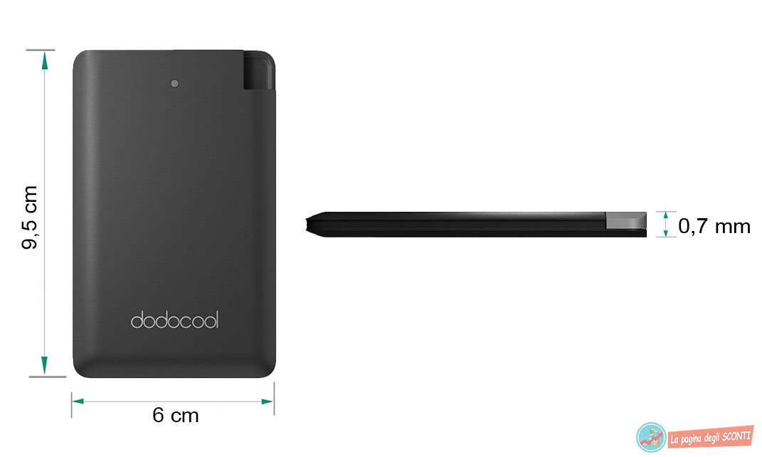 Stiamo parlando del mini caricabatterie portatile ultrasottile da 2500 mAh prodotto da Dodocool.