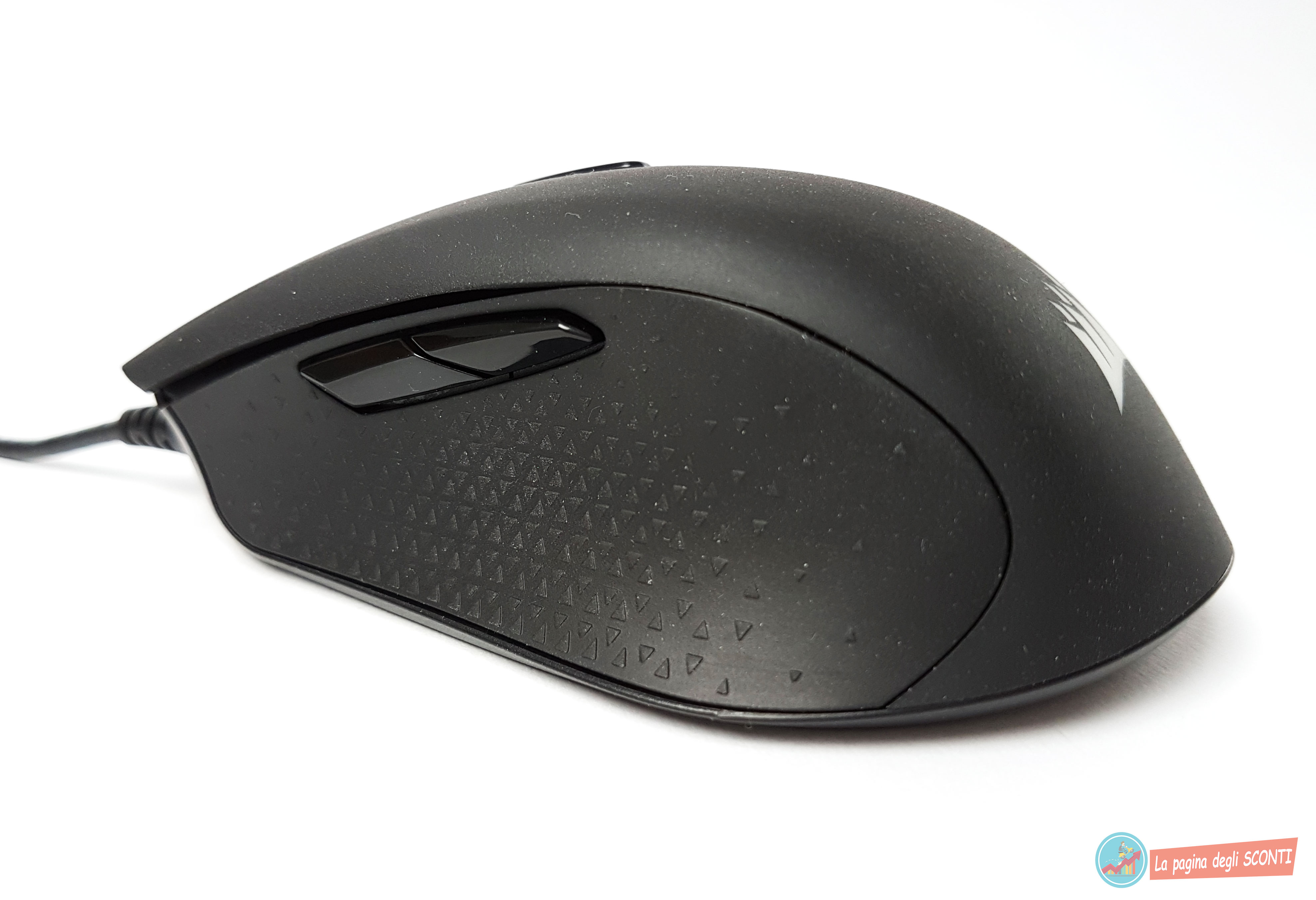 In questi tipi di prodotti è molto importante l’ergonomia, anche in questo caso Corsair ha svolto un ottimo lavoro, la presa infatti è molto comoda e non dovrete tenere la mano ad uncino, in quanto il mouse risulta piuttosto essere piuttosto “spazioso” e confortevole.