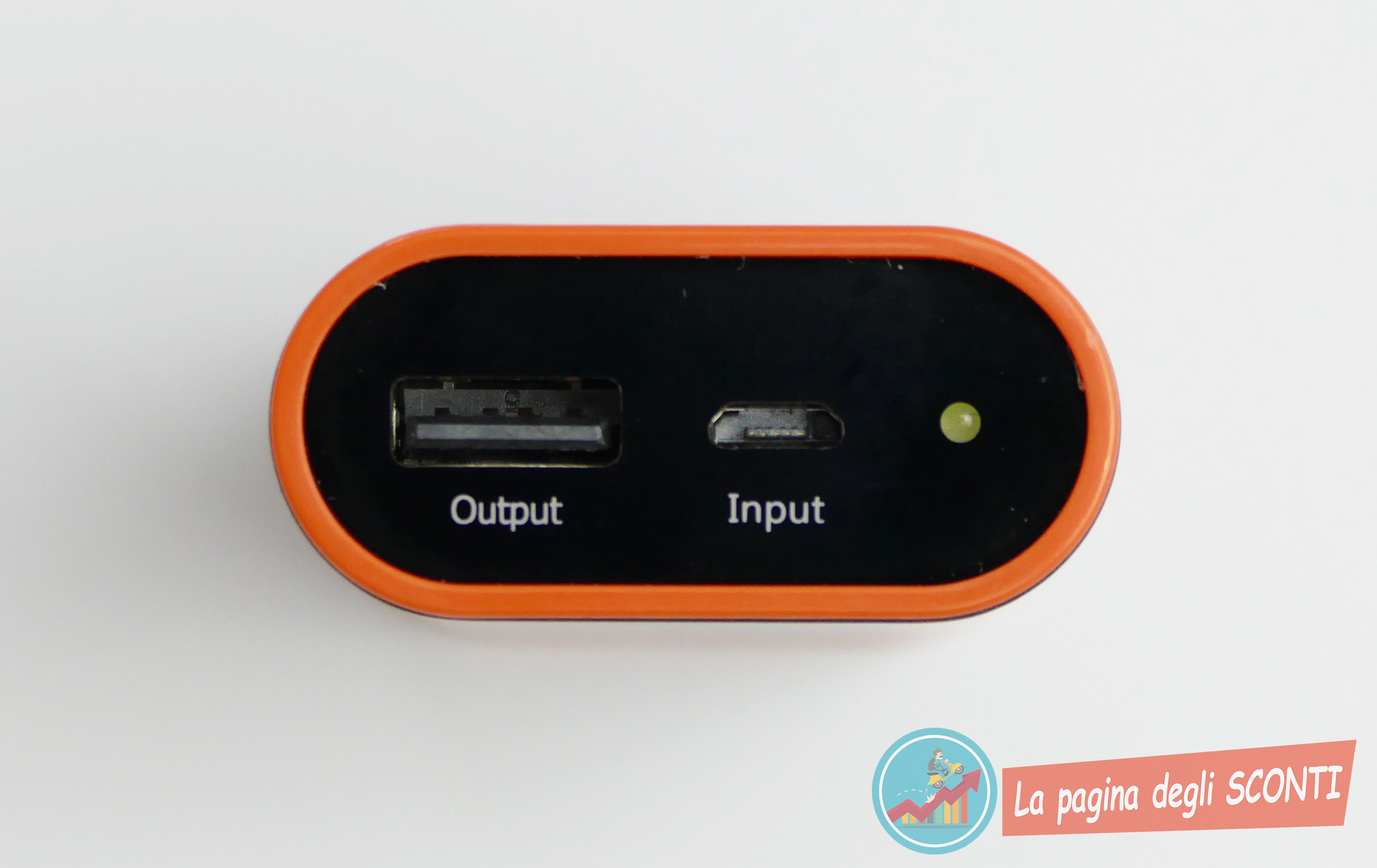 Frontalmente, troviamo un’entrata USB per la ricarica dei nostri dispositivi, un’entrata micro USB per ricaricare la batteria portatile e un mini LED che in caso di necessità potrete utilizzare come torcia.