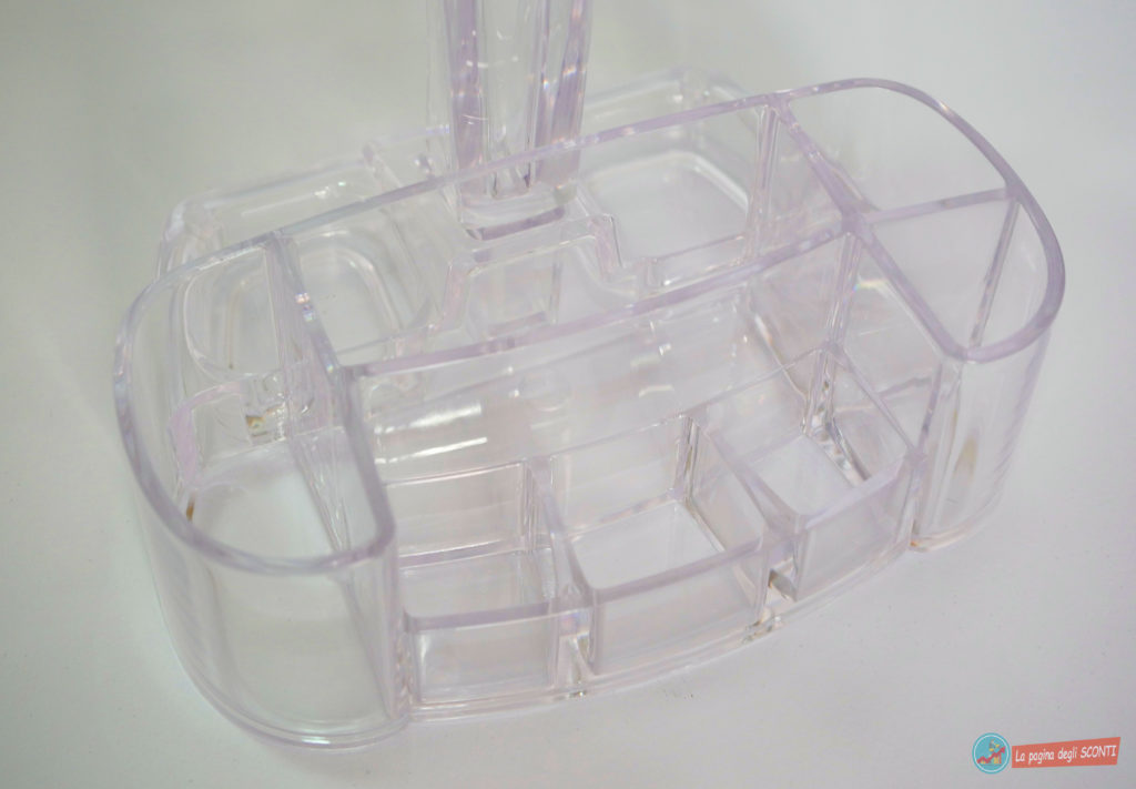 La basetta dispone di molti scomparti più o meno grandi, quindi potrete riporre tutti i vostri trucchi senza problemi o almeno quelli più importanti.