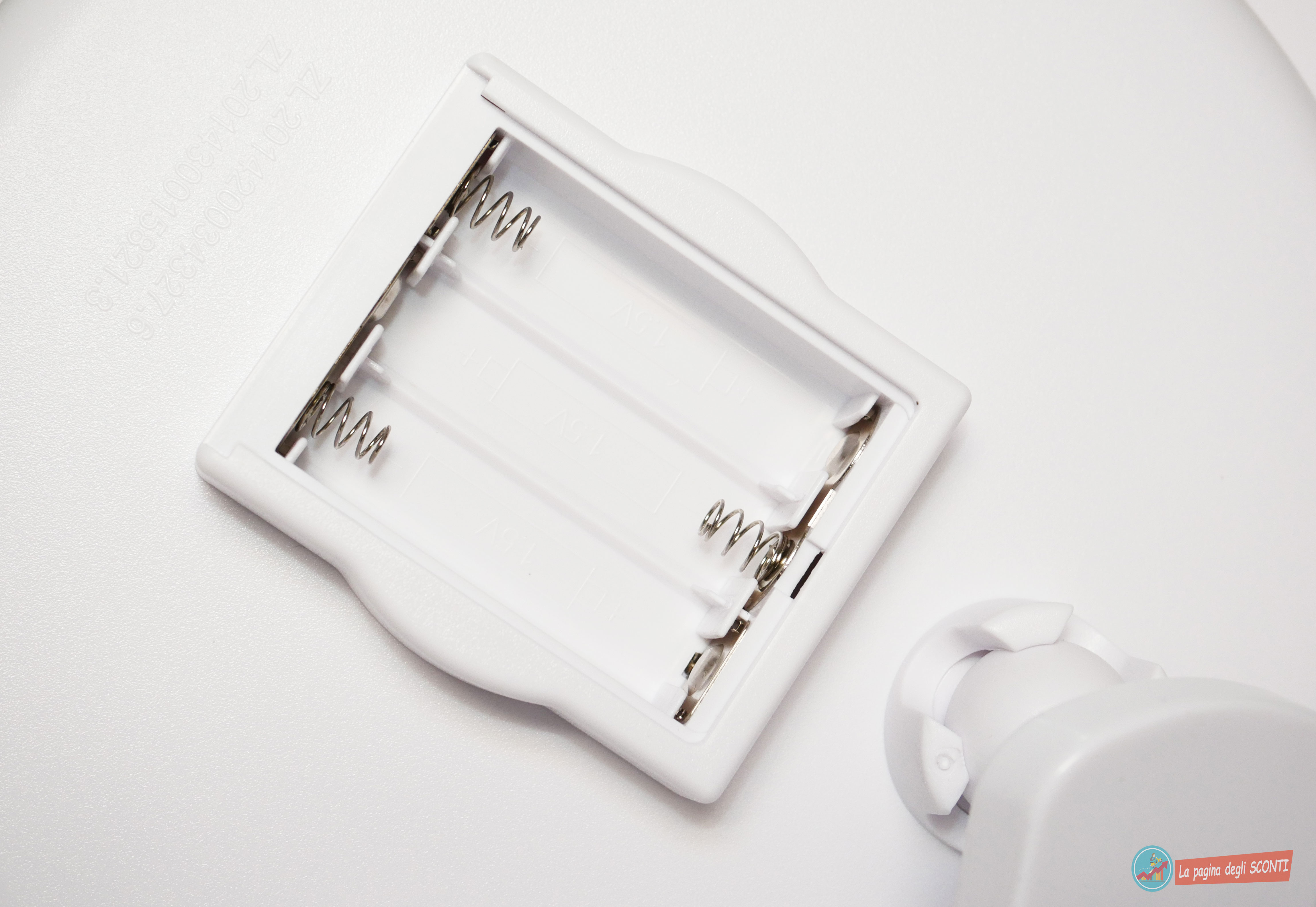 Per far funzionare la luce occorre inserire nella parte posteriore dello specchio, 3 pile AA (non presenti in confezione).
