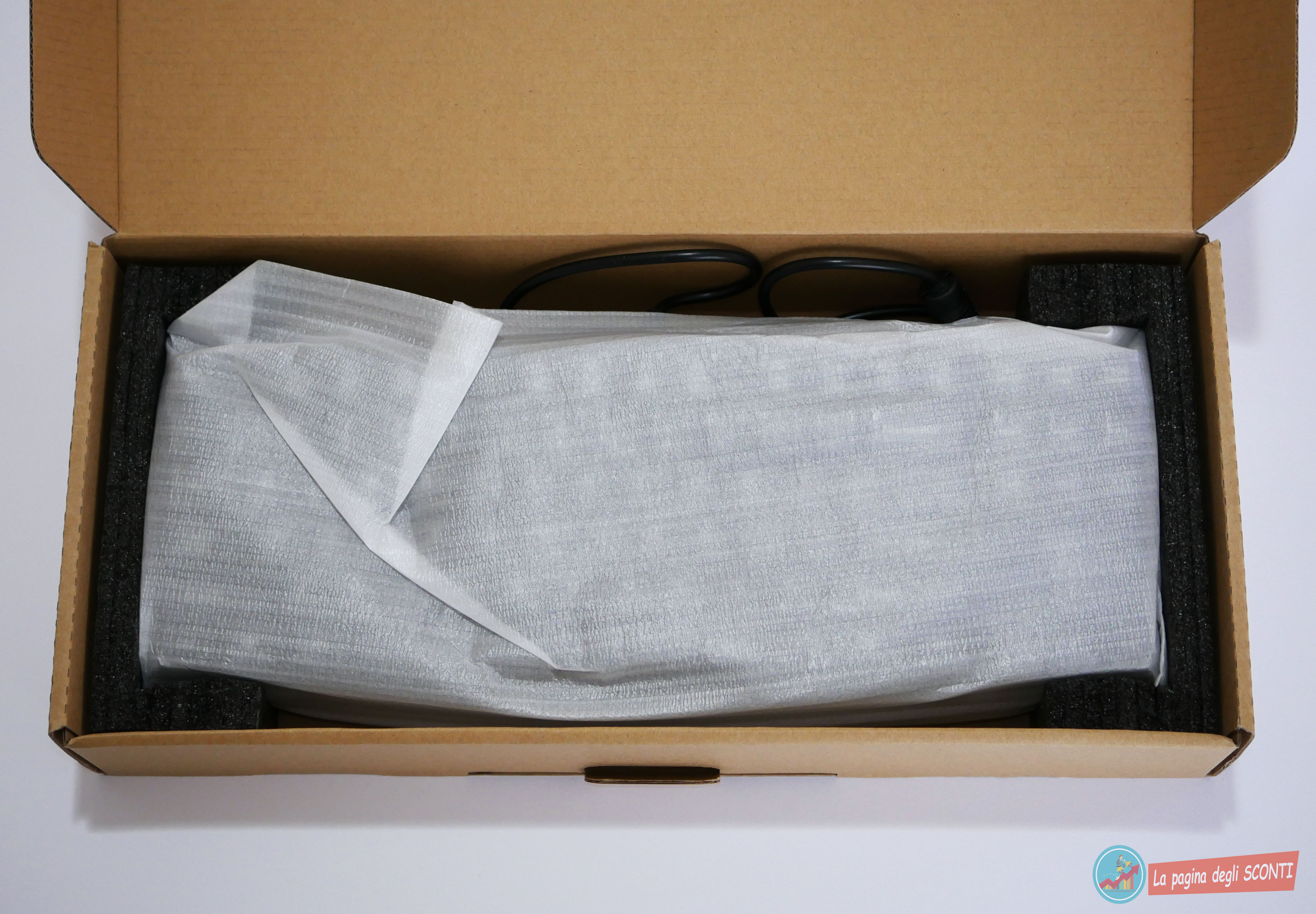La confezione nonostante la tastiera sia molta piccola, è comunque ingombrante, ed al suo interno non troviamo molti accessori.