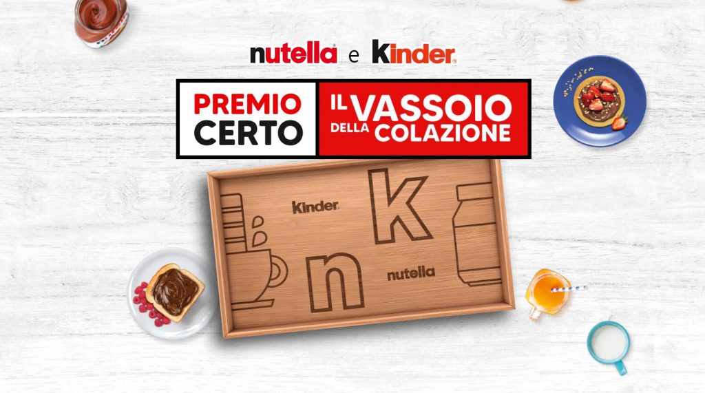 Kinder & Nutella promuove una nuova operazione a premi sicuri, denominata Vassoio Colazione 2022, valida dalle ore 12:00 del 2 settembre alle ore 12:00 del 26 ottobre 2022.