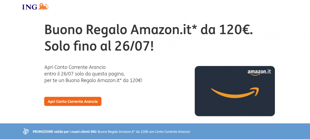 Ricevi un buono Amazon da 120€ aprendo subito il tuo Conto Corrente Arancio ING!