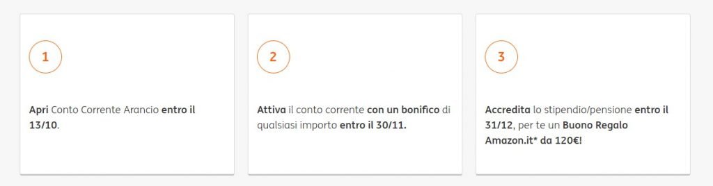 ing conto corrente arancio buono amazon 120€