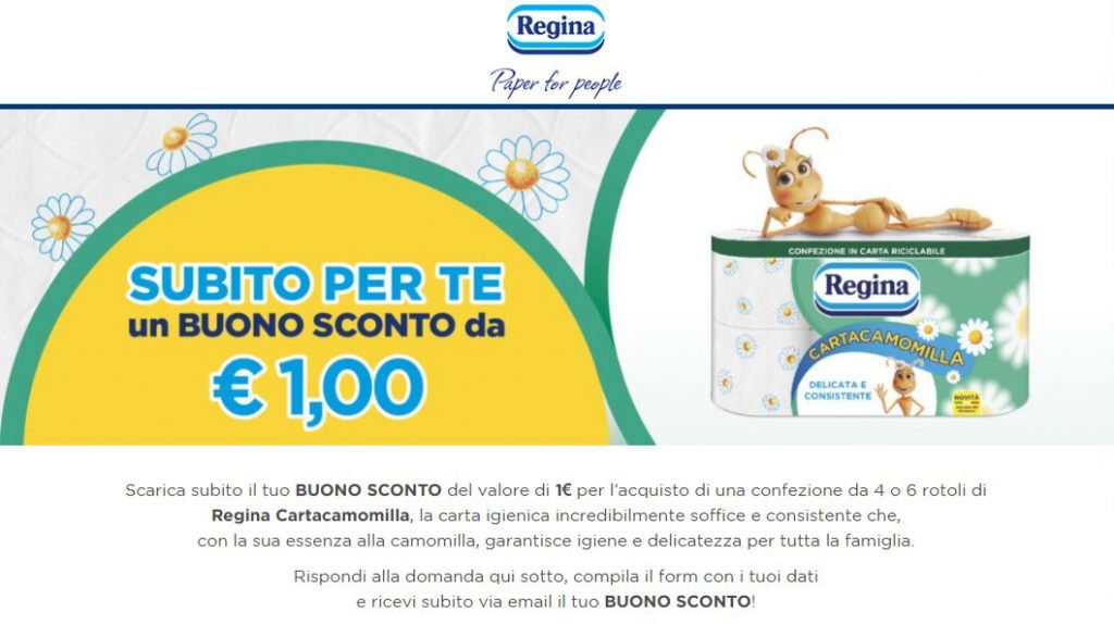 Richiedi GRATIS il Buono sconto Regina Cartacamomilla, per risparmiare 1 euro all’acquisto!