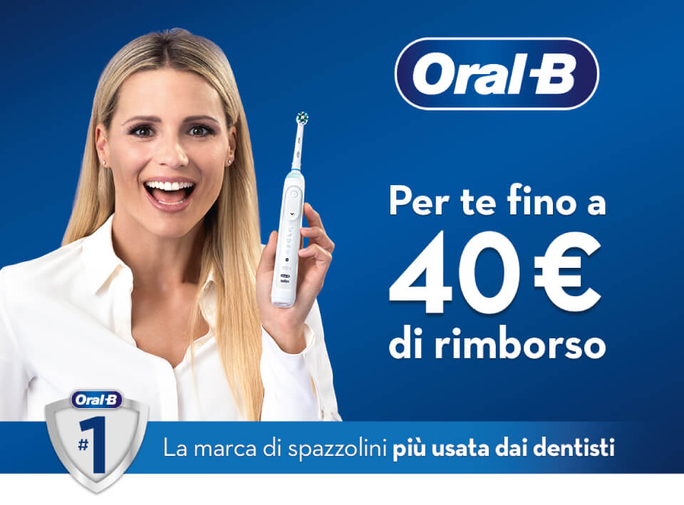 Torna la promozione più conveniente di Oral-B! Acquista uno spazzolino elettrico promozionato e ottieni fino a 40€ di rimborso!