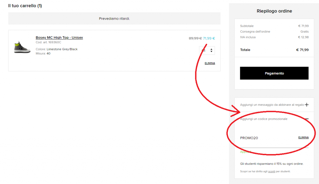 Così facendo il costo totale sarà automaticamente scontato del 20% e potrai tranquillamente terminare l’acquisto!
