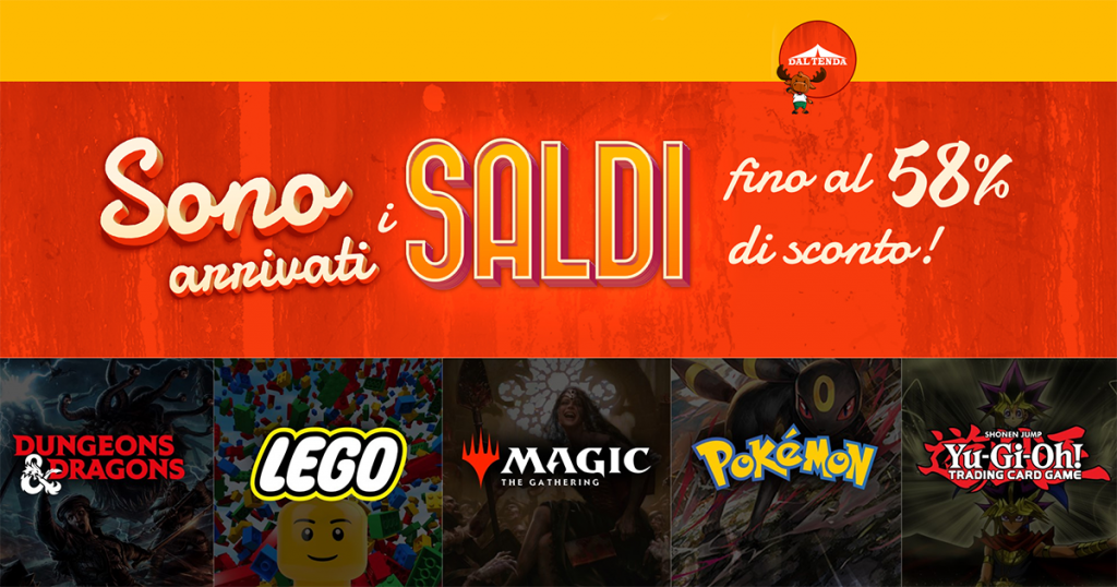 Per chi ancora non lo conoscesse, Dal Tenda è un rivenditore e distributore italiano di giochi da tavolo, di ruolo, di carte collezionabili, puzzle, lego e accessori. Il negozio tratta i brand più famosi, come LEGO, Dungeon & Dragons, Magic The Gathering, Yu Gi Oh!, Pokémon, e tanti altri!
