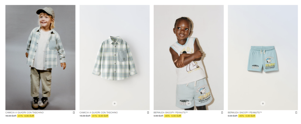 Zara non si dimentica neanche dei più piccoli, inondando di sconti anche la sezione Kids: maglie, pantaloni, cappottini, cappellini e molto altro a prezzi ultra economici, in alcuni casi scontati addirittura della metà.