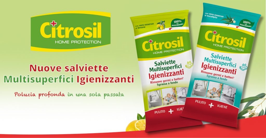 Le salviette Citrosil Home Protection Multisuperfici Igienizzanti sono ideali per rimuovere germi e batteri sia dentro che fuori casa.