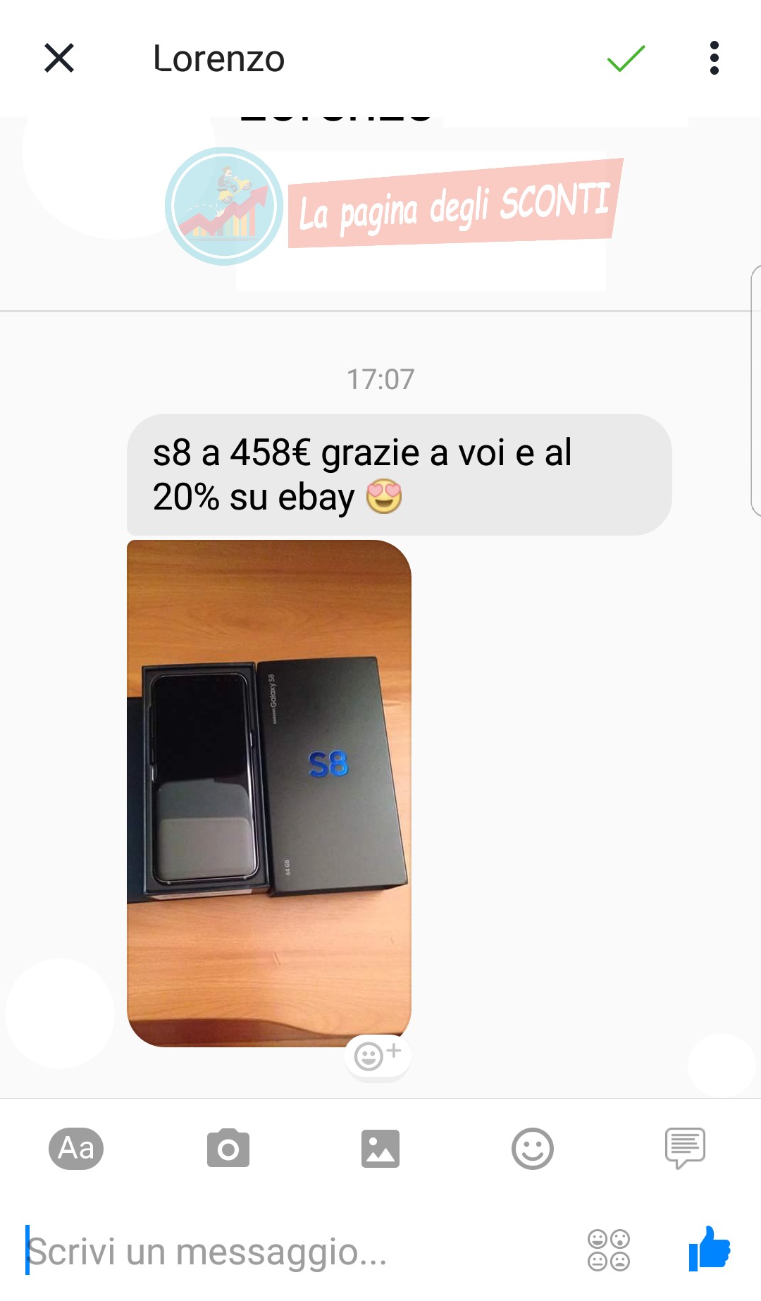 Lorenzo ad esempio, ci segnala l’acquisto del Samsung Galaxy S8 a soli 458€, nuovo con garanzia e spedizione inclusa!