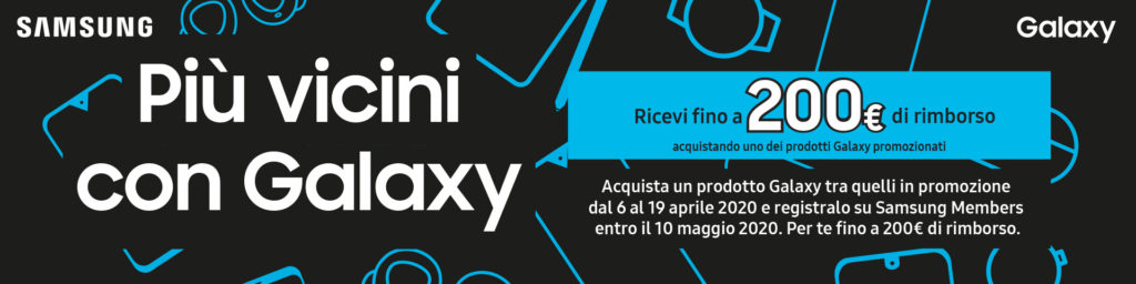 Con la nuova promozione di Samsung “Più vicini con Galaxy”, acquista un nuovo dispositivo del brand e ricevi fino a 200€ di rimborso!