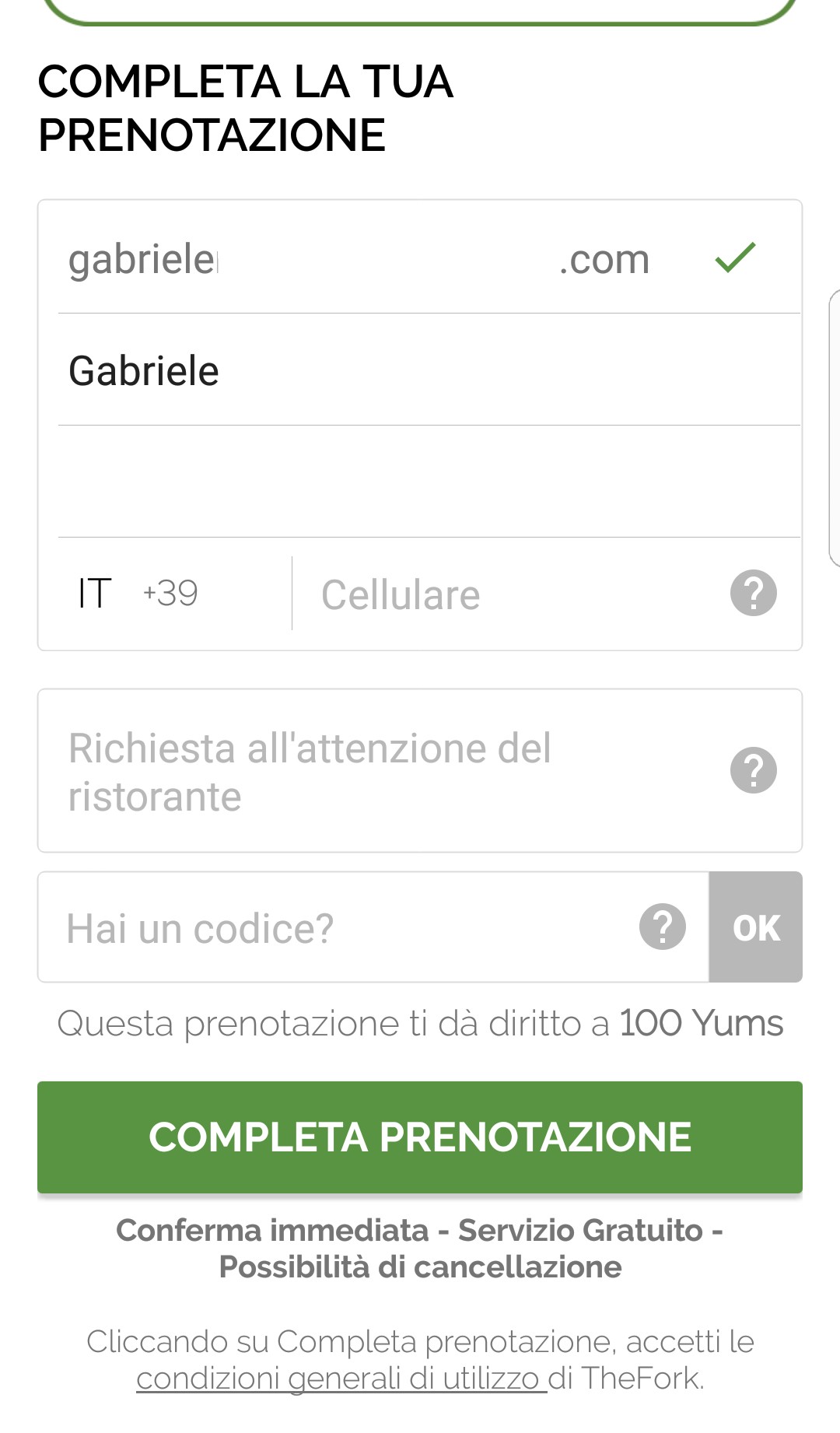 sconto the forkUna volta inserito il codice e prenotato, non dovrai far altro che recarti al ristorante e cenare/pranzare. Dopo 7 giorni, nella tua area fedeltà, vedrai comparire i tuoi 1000 Yums da utilizzare!