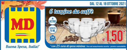 Ottieni lo speciale Set da 6 Tazzine da caffè, effettuando la tua spesa da MD!