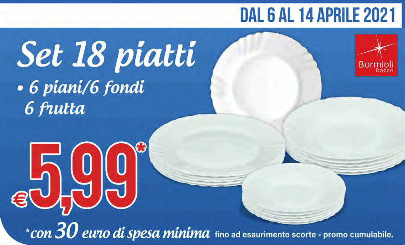 - spendendo 90€, potrai richiedere in cassa 3 set di piatti (con un supplemento di 17,97€)
