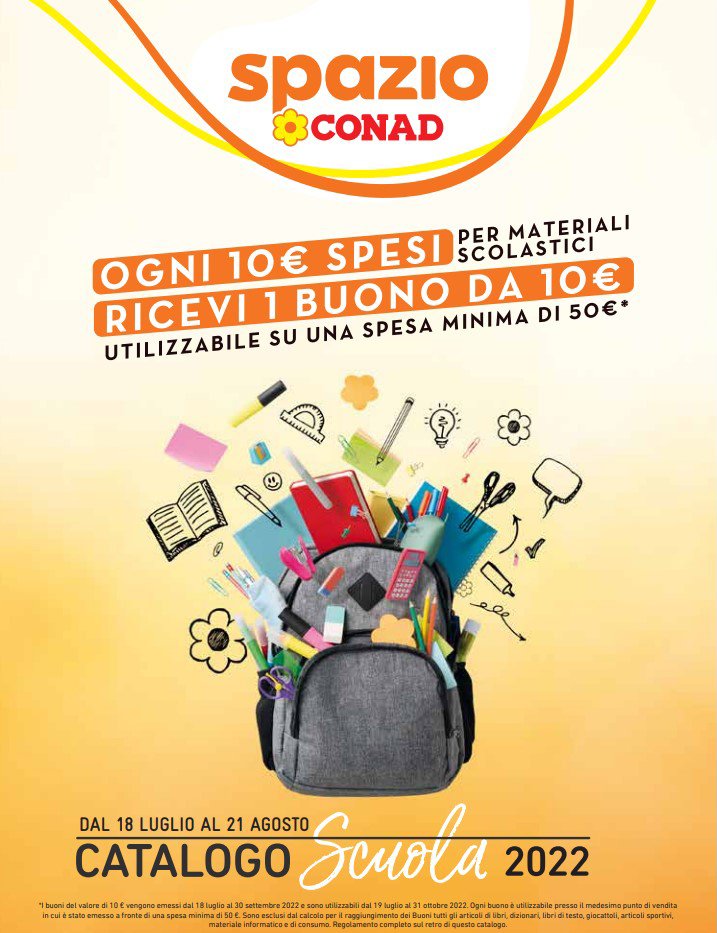 Dal 18 luglio al 30 settembre 2022, negli ipermercati Spazio Conad è attivo il “Catalogo Scuola 2022“!