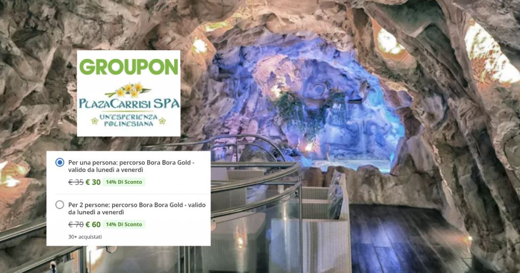 Su Groupon ingressi scontati del 14% per un percorso Spa Bora Bora Gold nel Paolo Carrisi Spa!